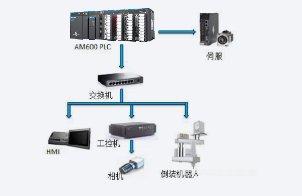 通過匯川AM600、匯川伺服與匯川機(jī)器人全套電氣主控方案配合,大大提高了單機(jī)設(shè)備的調(diào)試效率和生產(chǎn)效率